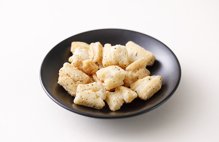 薫り豊かなスモークチーズに、黒胡椒でアクセントをつけました。コクのある刺激的な味わいは、ビールのおともにおすすめです!